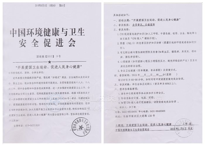 中国环境健康与卫生安全促进会发起的活动号召